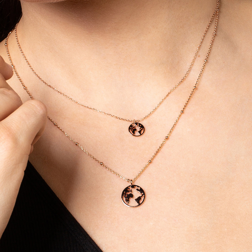 Einmal um die Welt! Alle, die immer Fernweh haben und auf der Suche nach dem nächsten Traumziel sind, haben mit dieser Kette aus funkelndem 925/- Sterlingsilber den perfekten Begleiter gefunden. Strahlend schön baumelt der Weltkugel-Anhänger von der filigranen Silberkette mit feinen Beads. Ein trendiger Allroundstar!